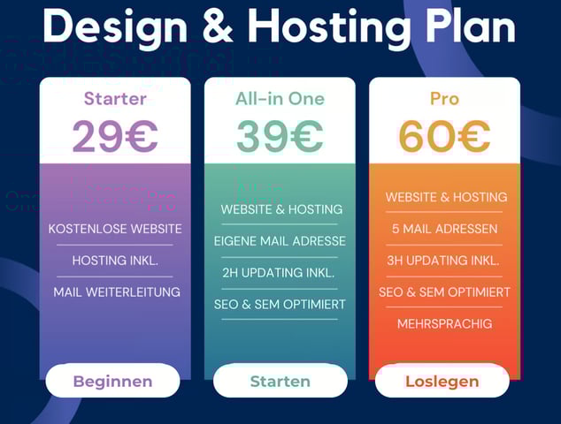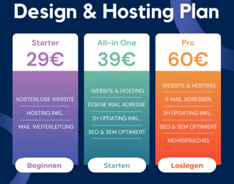 Unser Starter-Paket ist perfekt für Einzelunternehmer, Start-ups und kleine Unternehmen, die schnell und kostengünstig online gehen möchten. Schon ab 29 €/Monat.